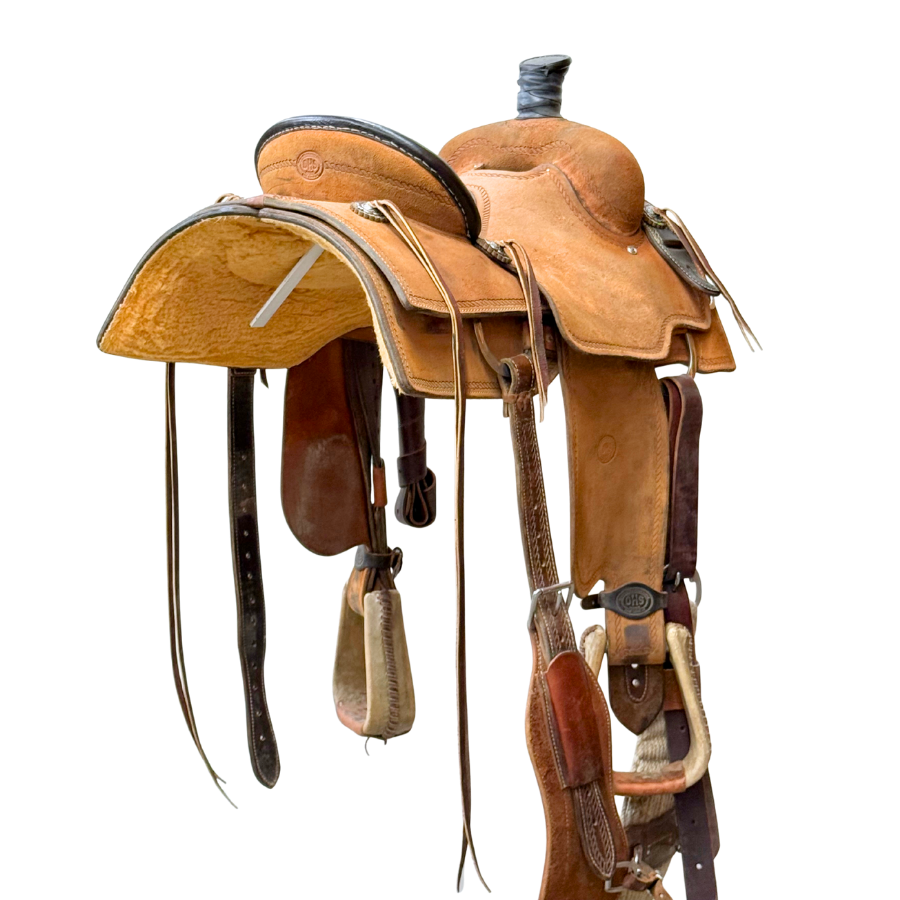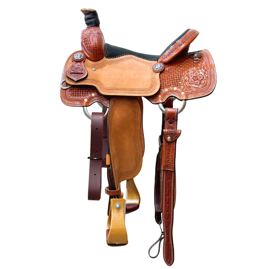 This tree has the tallest swells of any Dynamite Horseman Supply rope saddle and is 14 inches wide. It has a 6 ¾-inch wide gullet, full quarter horse bars and a 4-inch cantle. With the taller front end and the 4-inch cantle, this tree has the deepest seat with lots of saddle around you. Since the swells are so tall, this saddle will have a tendency to roll on a flat-backed horse, but fits horses with some slope to their shoulders very well. This is the signature tree of Brock Hansen, NFR Team Roper, and the tree comes with a lifetime warranty.